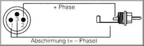 XLR auf Cinch Abschirmung Gehäuse Cinch an Pin1, Phase+ Spitze Cinch an XLR Pin3, XLR Pin3 mit Pin1 verbinden.
