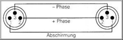 Standard Mkrofonkabel XLR auf XLR (Symetrisch) Abschirmung an Pin1, Phase+ an Pin2, Phase- an Pin3