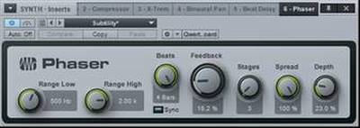 Durch Modulation der Phasenverschiebung mit einem Low Frequency Oscillator entsteht der typische Phaser-Effekt.